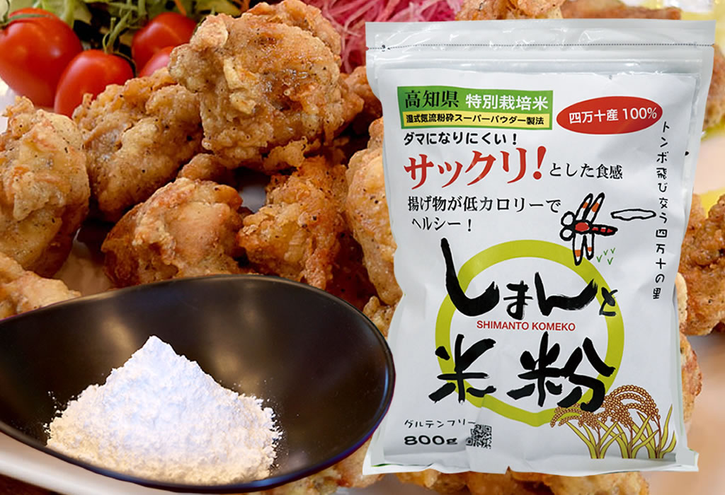 太古の昔から、ゆっくり、のんびりと流れ続ける日本最後の清流・四万十川。住民たちは自然に逆らわない営みを守り続けながら暮らしています。豊富な水資源に育まれた農地には、植物やトンボ、ホタルなどの生き物が数多く生息しています。この米粉は、そんな四万十の里で作られた特別栽培米を原料としてできた商品です。生態系を守りながら環境にやさしく、また身体にもやさしい「米粉」です。